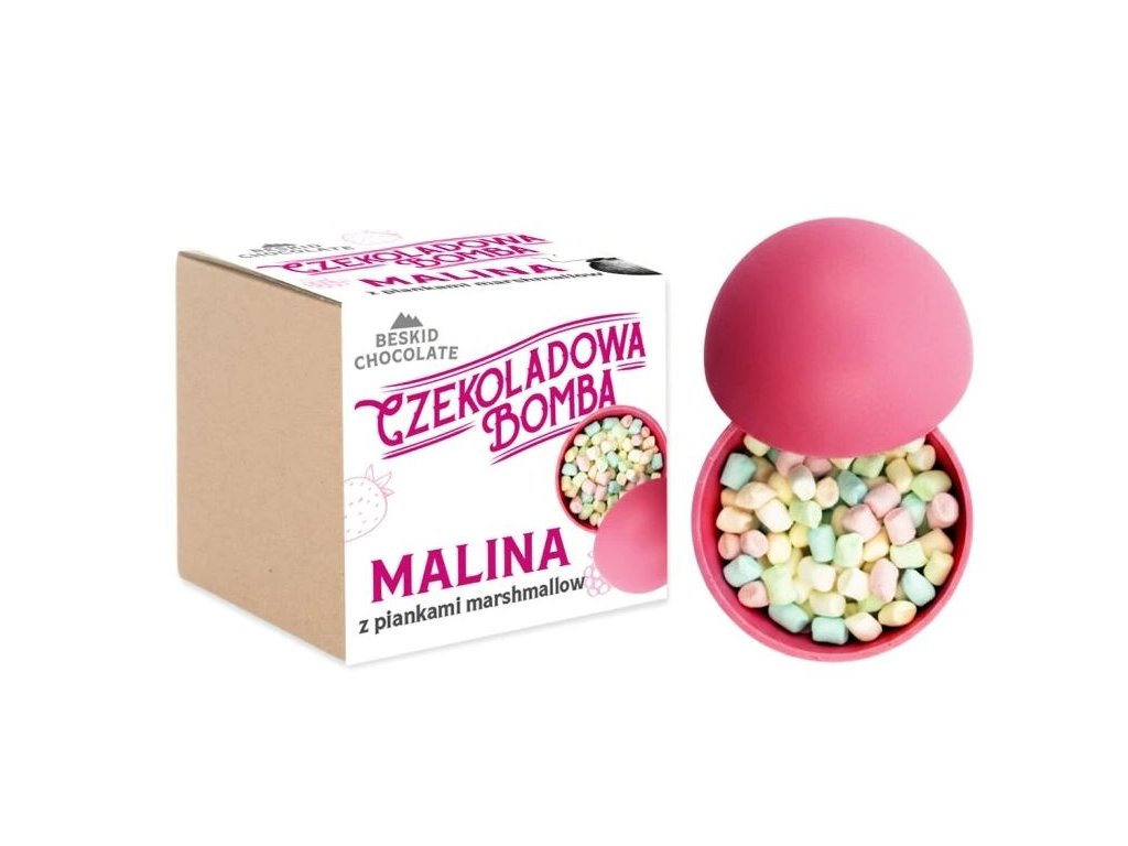 ... tak kdy to vybuchne? Naše čokoládová bomba v podobě poctivé 32 % bílé BEAN-TU BAR čokolády s malinami a překvapením! Není to jen tak ledajaké překvapení. Prostě vložte bombu do hrnku, zalijte horkým mlékem a čekejte na explozi barevných marshmallows , které vám připomenou dětství! Dopřejte si tento zážitek sami, nebo vašim blízkým. Krásný obal, který ještě více podtrhuje jedinečný obsah, představuje i dokonalý dárek nejen na dětskou party.