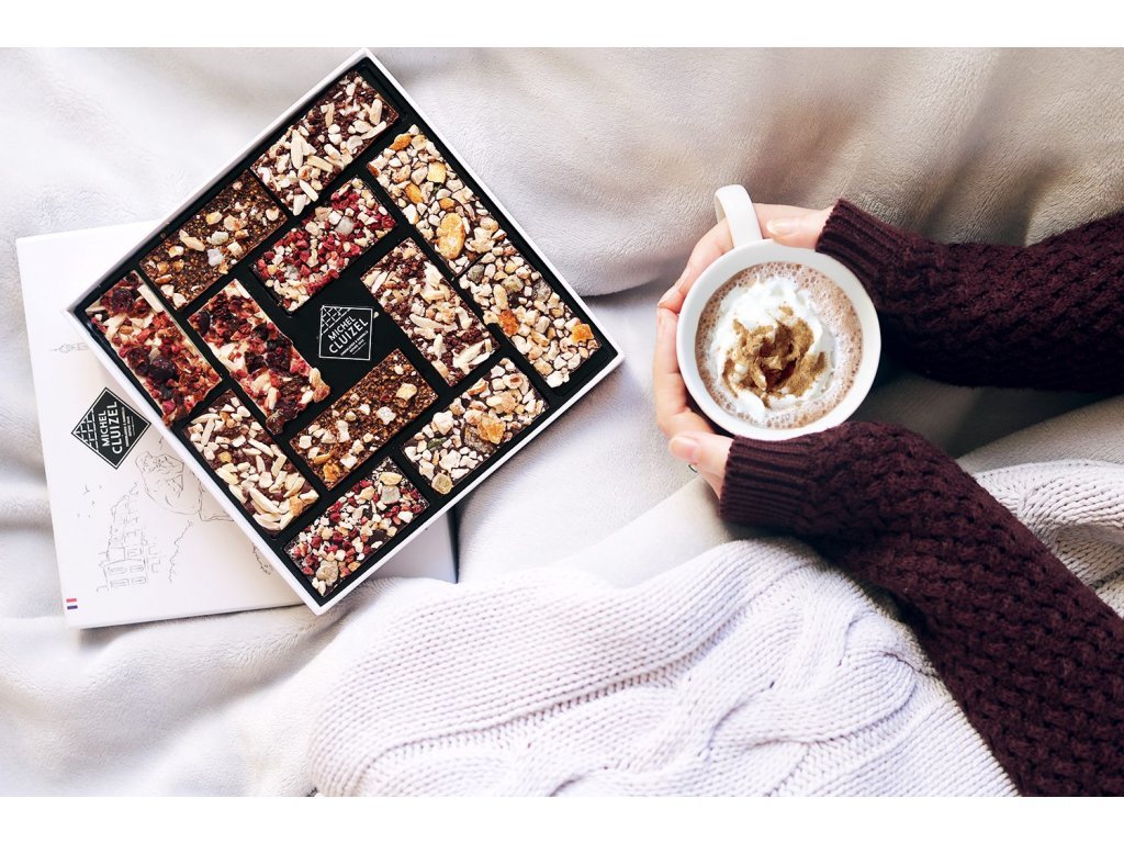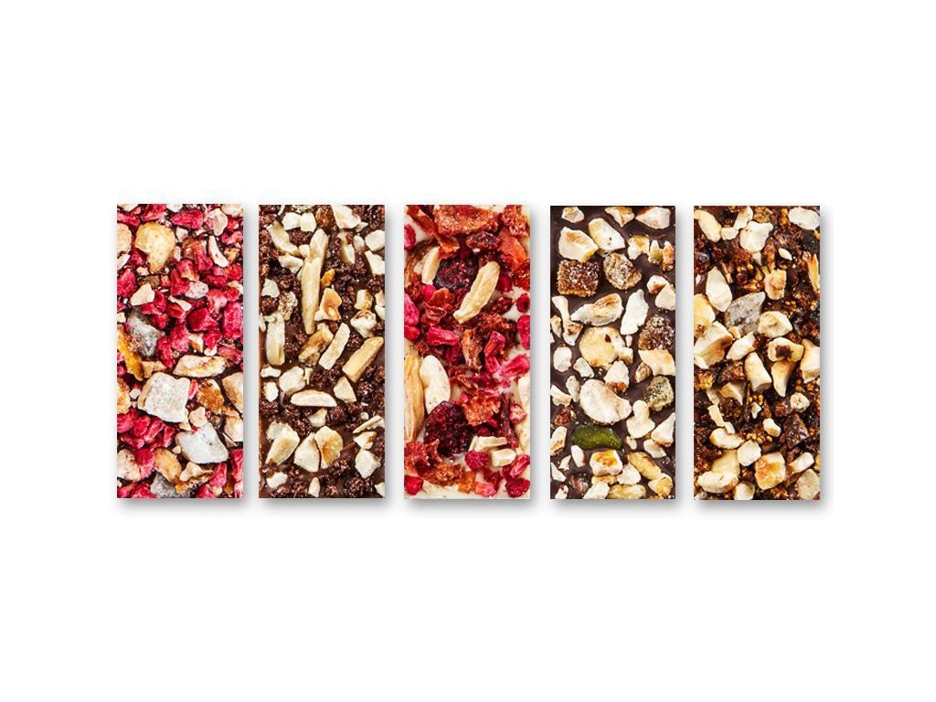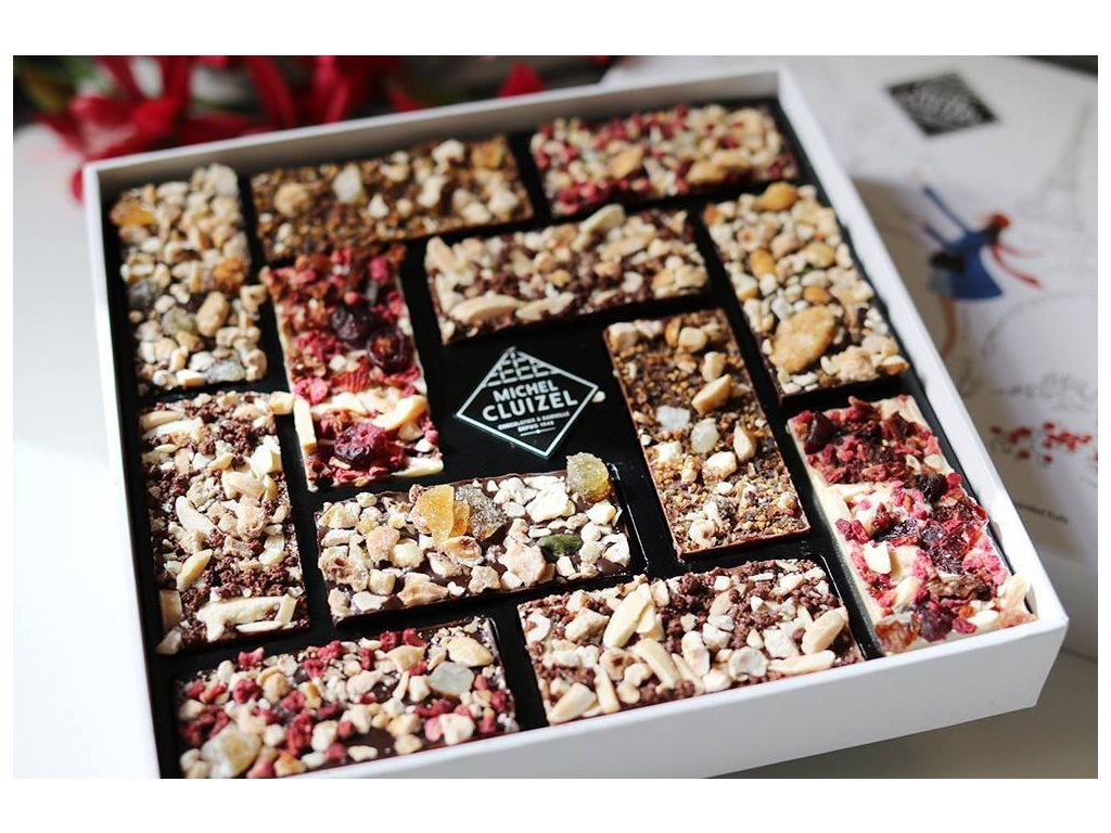 V elegantním Pařížském designu je tato degustační sada od Michela Cluizela prostě k nakousnutí. :) Obsahuje 12 čokolád štědře posypaných sušeným ovocem a oříšky. Stylová degustační extáze pro milovníky ovocných čokolád. Mléčné, hořké a bílé čokolády jsou posypané mandlemi, lískovými ořechy, pistáciemi, brusinkami, jahodami, malinami, kandovanými citrusy a cereáliemi, nově i karamelem.