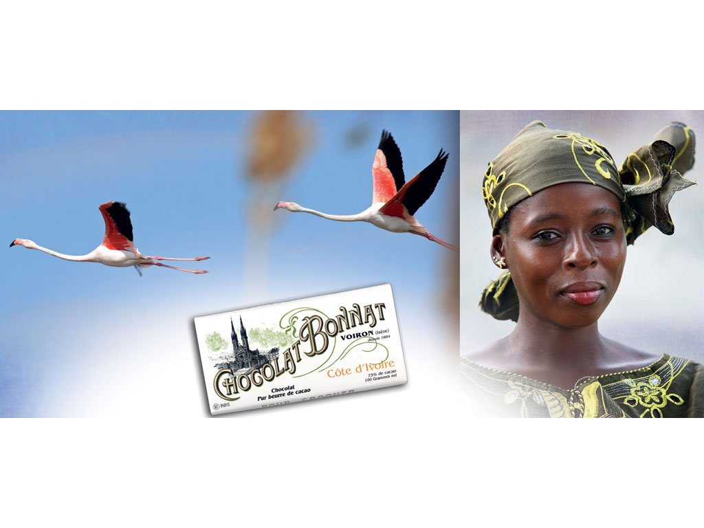 Géant des Brumes je výjimečná 75% hořká čokoláda připravená z kakaových bobů pocházejících z Ugandy. Kakao pěstované ve svěžím, zeleném prostředí na svazích hor obklopujících neproniknutelnou džungli, kde se volně pohybují gorily, je základem této jedinečné čokolády. Její výrazná květinová chuť je prolnuta jemnými tóny čerstvého melounu a sladkého, přesto výrazného kakaa, které společně vytvářejí nezapomenutelný chuťový zážitek.