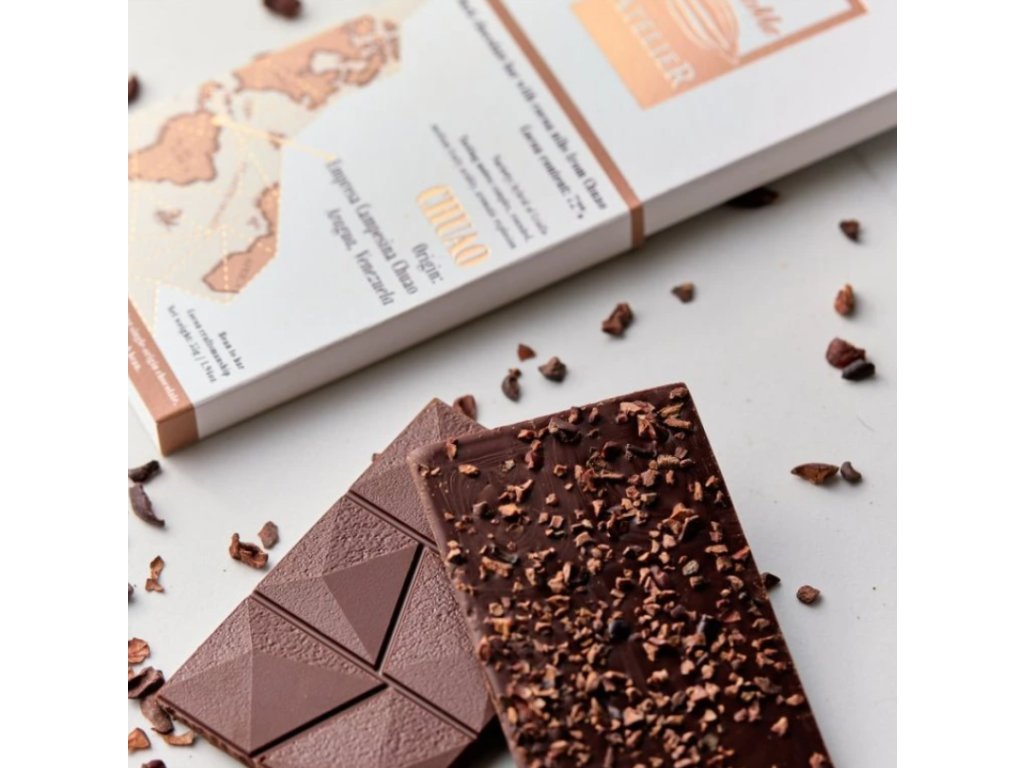 Hořká čokoláda Chuao s drcenými kakaovými boby AtelieR 72 %