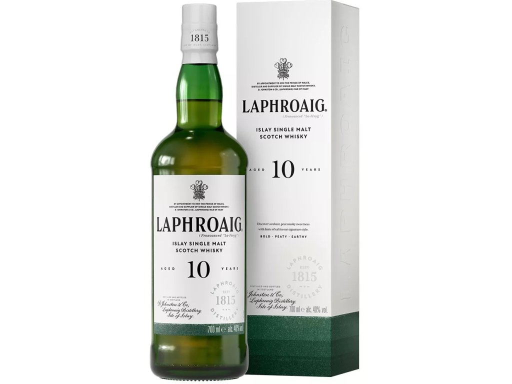 Laphroaig je 10tiletá whisky, která patří mezi nejosobitější skotské alkoholické nápoje. Whisky s typicky výraznou, kouřovou chutí slané rašeliny a nádechem mořských řas. Závěr je příjemně sladký. Při výrobě whisky Laphroaig se ječmenný slad suší nad hořící rašelinou. Kouř z této rašeliny dodává této whisky její výjimečnou bohatou chuť.