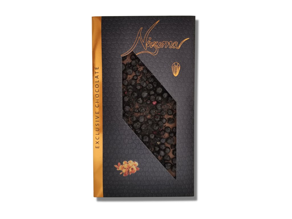 Mléčná čokoláda 33,6% s borůvkami 125g - velká, řemeslná, exkluzivní, dárková