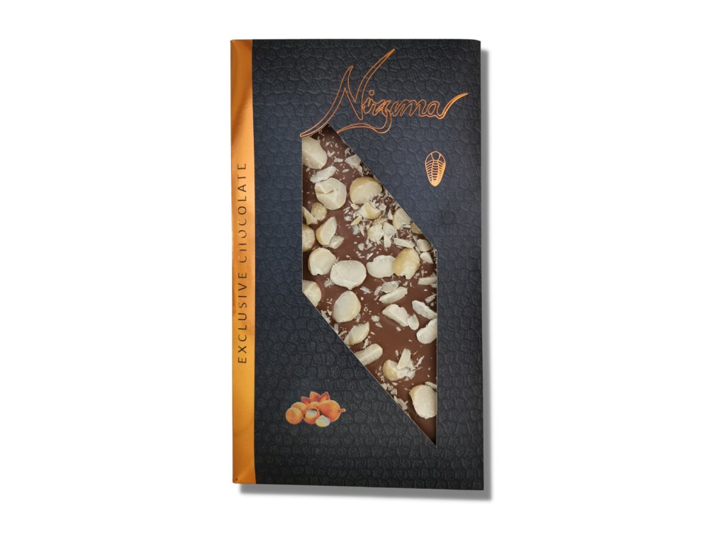 Mléčná čokoláda 33,6% s makadamovými ořechy 145g - velká, řemeslná, exkluzivní, dárková