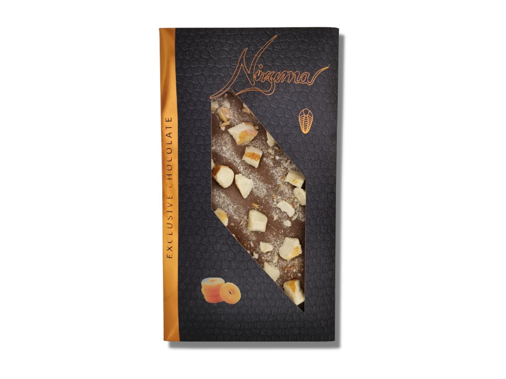 Mléčná čokoláda Nizuma s obsahem 33,6% kakaové sušiny je doplněna o 17,9% lyofilizovaných tvarůžků. Sladká a krémová chuť mléčné čokolády se výborně snoubí s jedinečnou chutí tvarůžků, což vytváří zajímavou a lahodnou kombinaci. Vyrobena bez umělých přísad, ideální pro milovníky netradičních a odvážných čokolád.