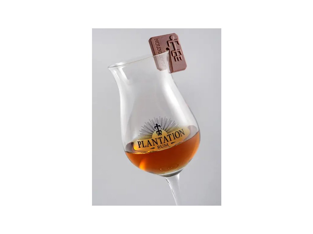 55% mléčná čokoláda z kakaových bobů z Karibiku obsahuje 22 koření a bylin. Její tóny karamelu, kampotského pepře, květu skořice a levandule jedinečně doplňují charakteristiky Plantation XO 20th Anniversary. U finálního výběru čokolády byl přítomen i Alexandre Gabriel, zakladatel i master blender rumů Plantation. Na netradičním tvaru čokolády najdete i totem, symbol značky představující harmonii mezi matkou Zemí a lidským duchem.