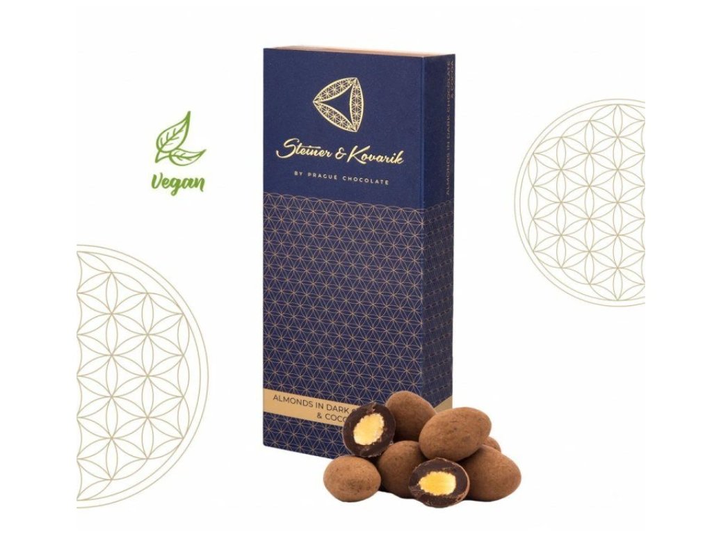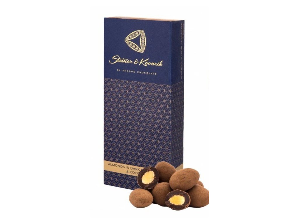 Kalifornské mandle nasucho pražené, obalené v hořké čokoládě a poprášené kakaovým práškem přináší výjimečný zážitek pro vaše chuťové buňky. Tuto kombinaci zbožňuje mnoho milovníků hořké čokolády. Mandle od Steiner & Kovarik jsou nejžádanějšími mezi zákazníky a dostaly i ocenění Greate Taste od 500 kulinářských expertů světa.
